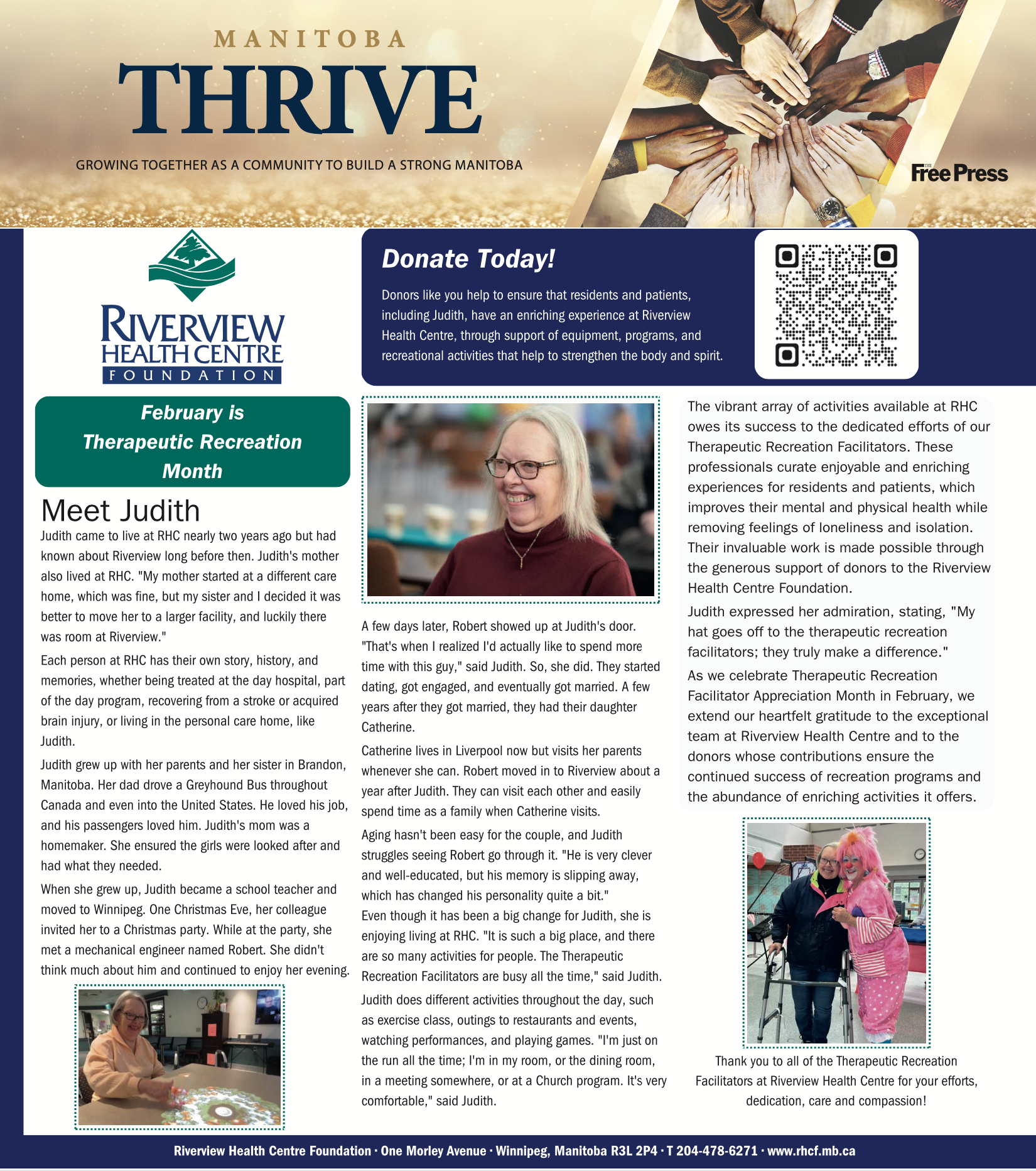 I wrote this story and created the design to be featured as a Thrive Ad in the Winnipeg Free Press. The goal of this project was to highlight the work the Foundation does and the impact the donors make.